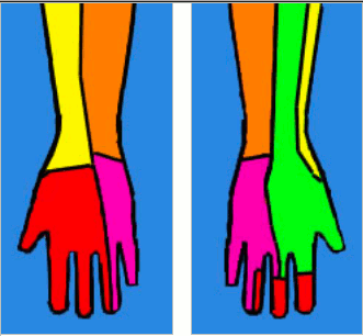 | 26 août 2009 à 13:02 | Lesion tronculaire.gif (fichier) | 33 Kio | Secteur du radial (vert), médian (rouge), cubital (violet) brachial cutané interne (marron) musculo cutané (jaune) | 1 |